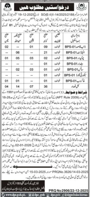 Candidates with Primary education and Balochistan domicile can apply.