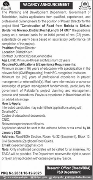 In this hiring update the department is looking for capable candidates for management level positions. The main post mentioned is project director and other details like eligibility, required documents and deadlines are explained below. If you are searching for Planning & Development Department Kech Job 2026 then reading each section carefully will help you understand the full process.