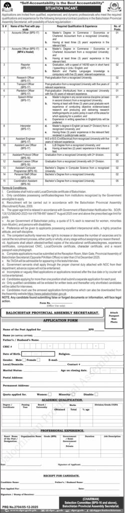 Provincial Assembly Secretariat Balochistan – New Govt Careers for 2025